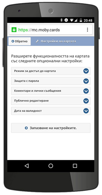 Опции и настройки на Вашата карта moby.cards